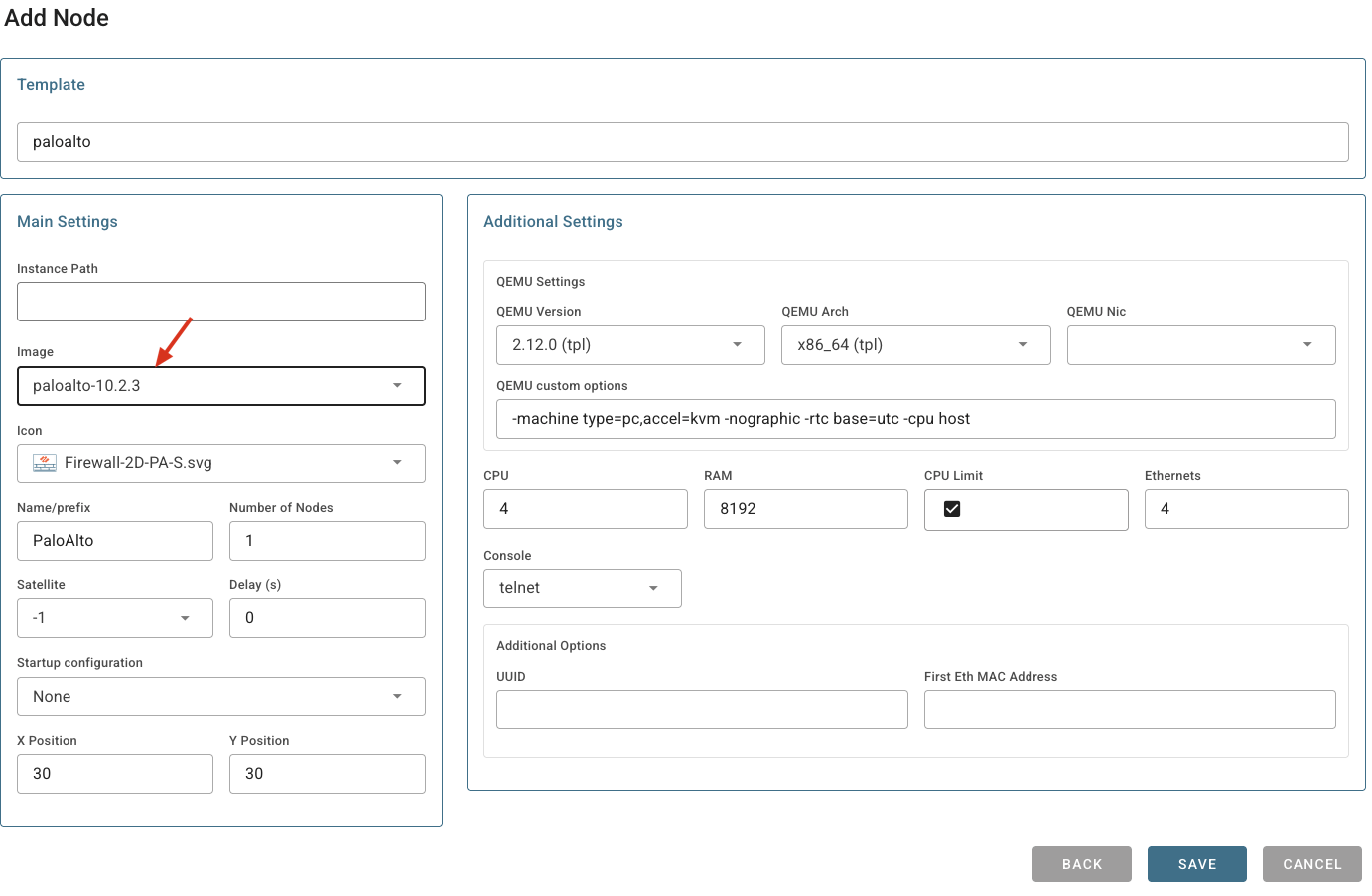 root@eveng:~/node-images# mv PA-VM-KVM-10.2.3.qcow2 /opt/unetlab/addons/qemu/PA-VM-KVM-10.2.3/virtioa.qcow2root@eveng:~/node-images# /opt/unetlab/wrappers/unl_wrapper -a fixpermissions